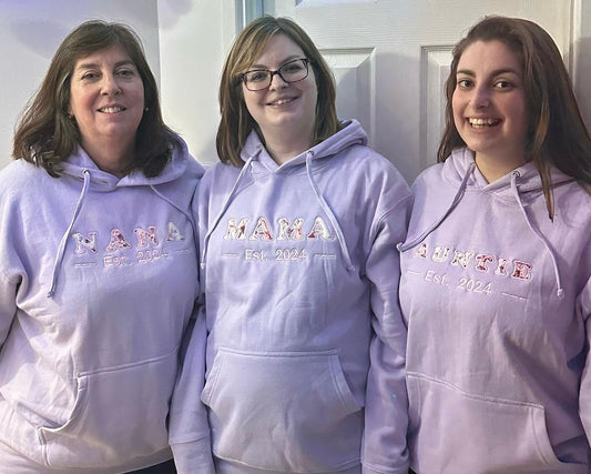 Keepsake Hoodie - Applique Baby's First Baby-Grow Embroidered onto Hoodie - Personalised Gift, Keepsake for Mama, Dada, Auntie, Uncle, Nana